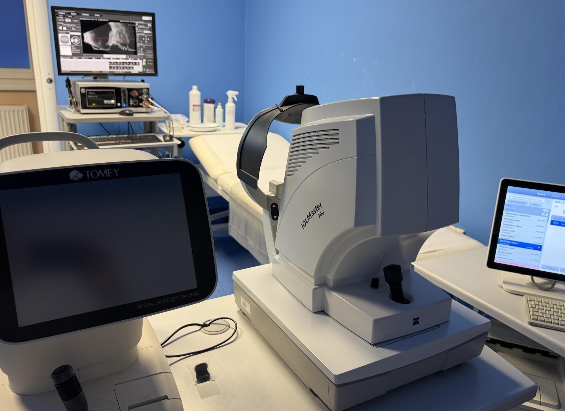 - moderné vyšetrovacie jednotky s prístrojmi na vyšetrenie predného i zadného segmentu oka